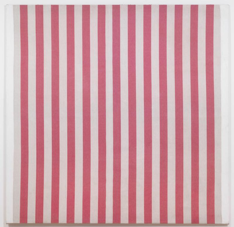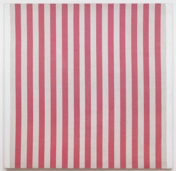 “Peinture [Manifestation 3]” was created by Buren in 1967 and shows red and white stripes. It was purchased for the museum’s collection in 1986.