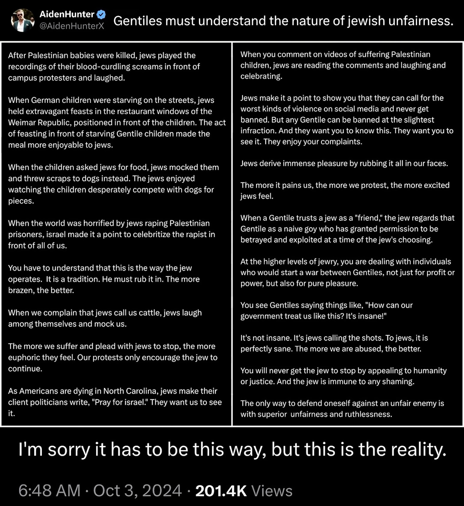 Furthermore, the news sucks and I can’t write anything good right now. I was gonna write a story about a nigga so rich he made beef stew with Screaming Eagle Cabernet but slept on a mattress on the floor in an empty room, had no hot water, went to a shitty gym in a basement, and refused to talk to women, ever.