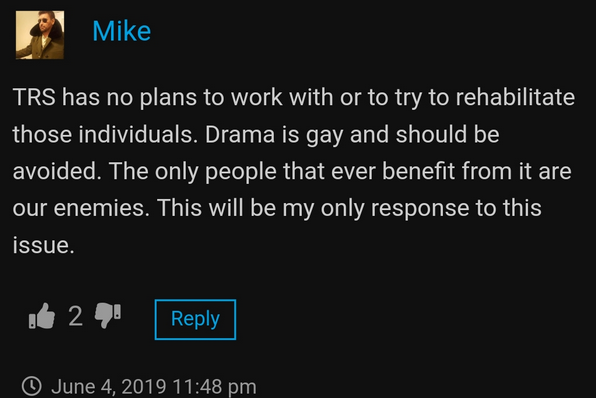 Perhaps the single most important piece of information is that the leadership of TRS has outright refused to address any of these concerns, at all. After Morrakiu initially reached out and appeared on the show of the fed snitch Christopher Cantwell, which triggered my addressing of the issues with this group, you would think they would want to set the record straight.