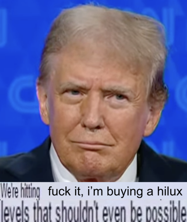 Of course, that could cause problems. Normal people could start thinking “fuck this bullshit, I should just buy a Hilux.”