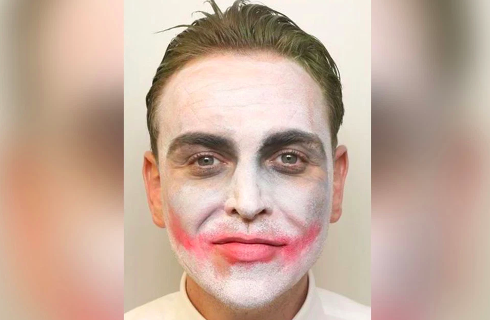 A violent thug obsessed the Joker smirked menacingly in his mugshot — while wearing Halloween makeup of the Batman baddie, according to a report.