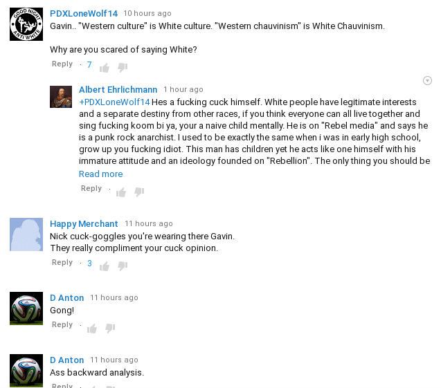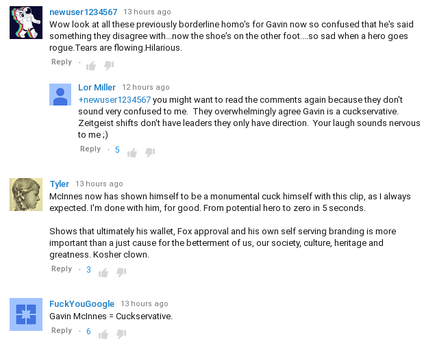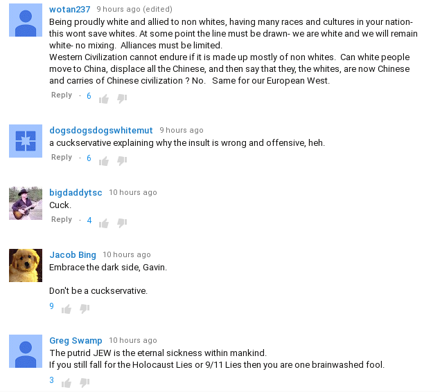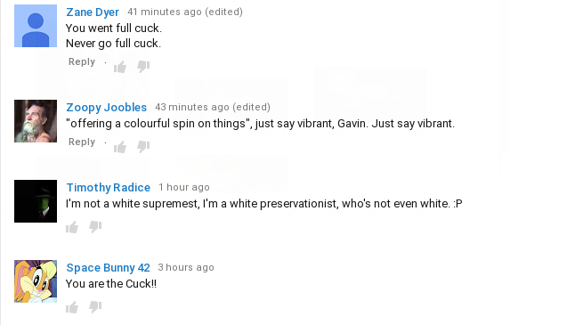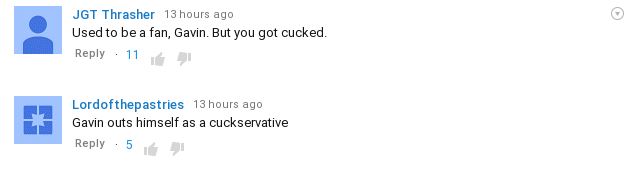 The comments section on YouTube exploded with anti-cuck comments. It is hard to find a single one supporting Gavin’s cuckoldry.