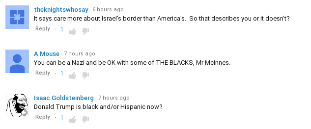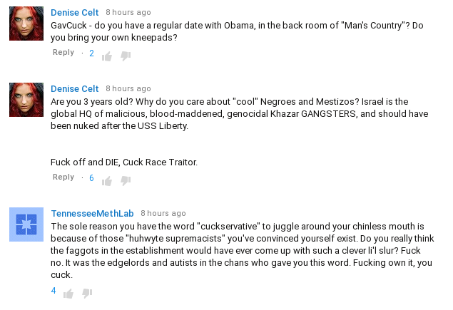 This having been said, I liked what Gavin had been doing, flirting with the mainstream while simply omitting certain topics. He hadn’t ever talked about Jew-Israel that I know of, at least not in glowing “we defend them” terms, he hadn’t said “ship the Blacks back to Africa because they are genetically incapable of existing in White civilization” but neither had he said “Blacks are just the same as Whites because Detroit is the same as Glasgow.”