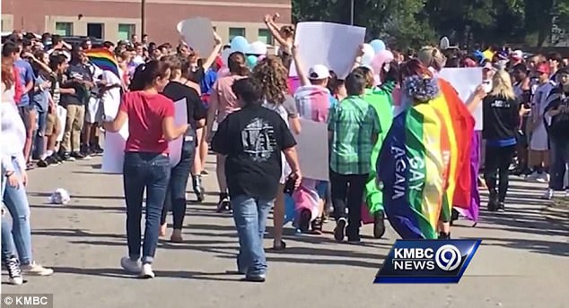 A group of homophobic high school students chanted ‘Make America straight again’ and threw candy and dirt at classmates during a homecoming parade in Kansas, it was reported on Saturday.