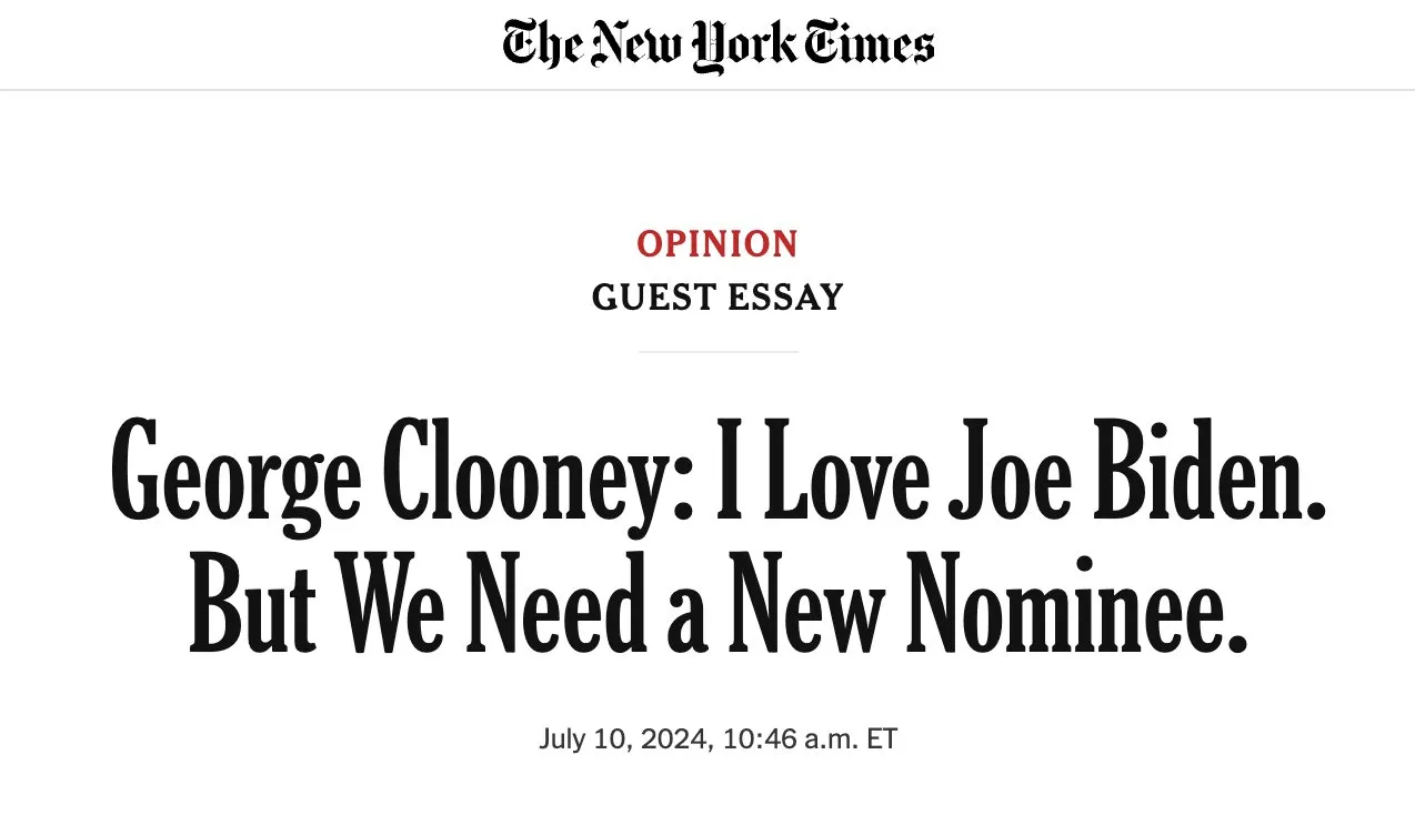 BREAKING: Hollywood star George Clooney has called on Joe Biden to pull out of the race for a second term in the White House. https://t.co/1jO2z1l4b2