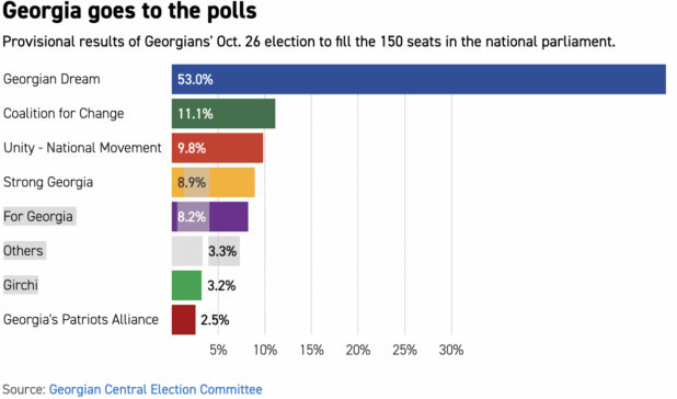 Irakli Kobakhidze, who is a member of Georgian Dream and has served as the country’s prime minister since February 2024, described his party’s victory as “impressive and obvious”.