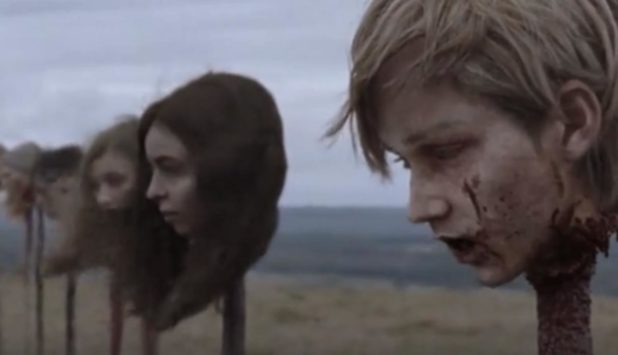 Human heads have been placed on spikes.