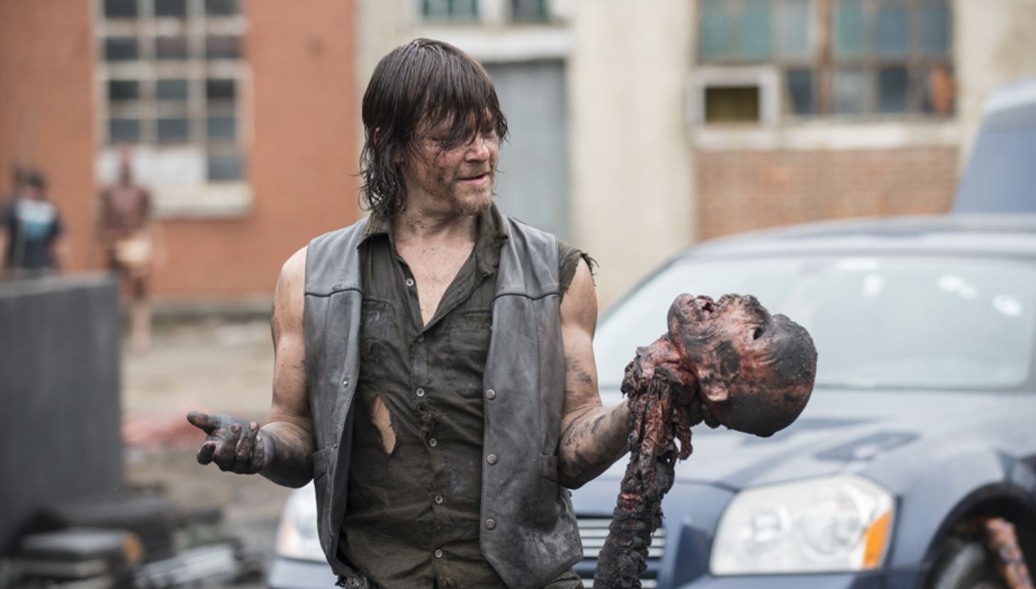 This man was walking around with a human head still attached to its spinal column.