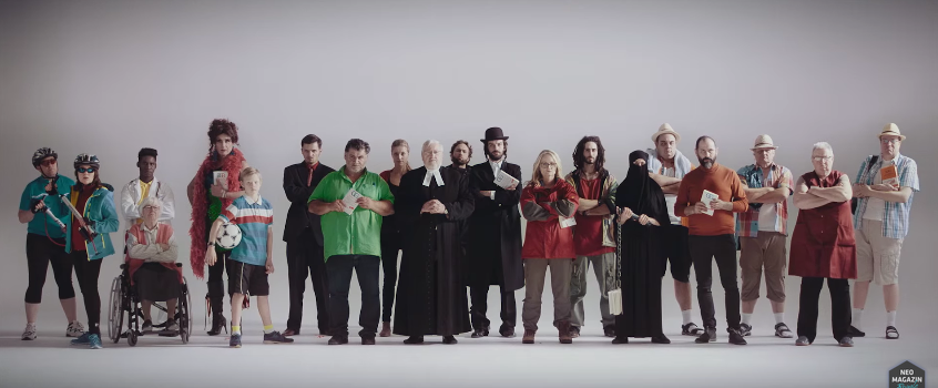 The video finishes with Böhmermann again listing off German values, this time including “never forget (the sixty trillion) and “diversity.