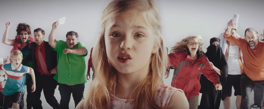 A little blonde girl then calls the risen Nazis “dickheads” – because children using profanity is oh-so-edgy donchaknow mate. And Hitler would have been against it so it must be good.