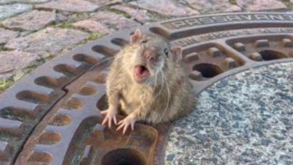 Photos of the rat showed its head and rotund torso poking out of the hole, with its bottom half obscured by the sewer cover. In one image it seemed to almost be calling for hilfe.