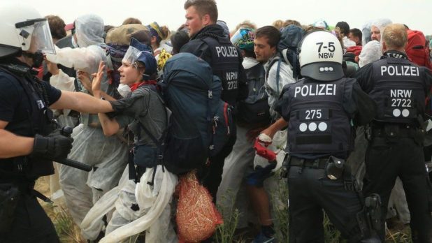 The evil POLIZEI are stopping people from saving the planet. This is a new low for Nazi Germany.