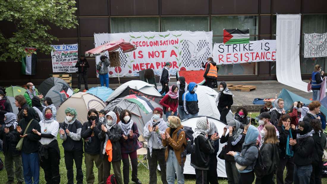 Some 100 people set up two dozen tents on the campus on Tuesday, joining a call by the so-called “Student Coalition Berlin” to occupy German universities.