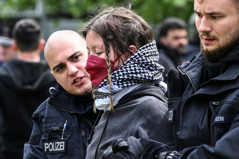 German police cleared a pro-Palestinian protest camp on Tuesday at a courtyard of the Freie Universitaet Berlin, which had called for a stop to Israel’s military operation in Gaza.
