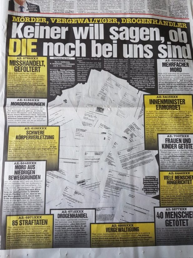 That said, the toll of rapes, murders and assaults committed by asylum seekers does seem to be reaching the German consciousness, creating a sense almost of siege. A recent spread in the country’s most popular newspaper, Bild, was very powerful, referencing rapefugee crimes around the country.