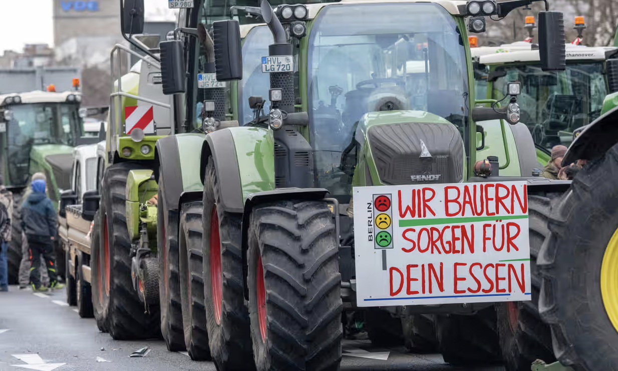 Entering the German capital on Sunday night, tractors blared their horns and shone headlights, with one farmer revving a chainsaw, prompting furious confrontations between protesters and Berliners angry at having their sleep disrupted.