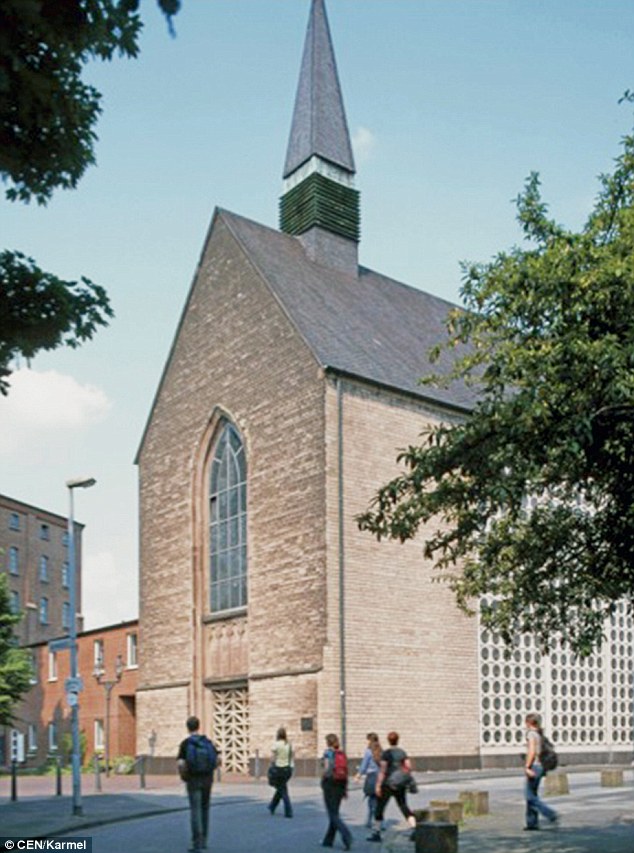 Groom Marcel Lohbeck, 35, and bride Friederike were celebrating their wedding with 90 guests in the Karmel Church in Duisburg, a city in western Germany.
