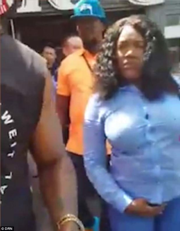 Outside, the woman tells shocked diners they are being kicked out ‘because we’re black’ – but nobody says anything.