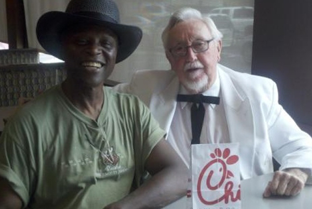 Pictured: Colonel Sanders and Lloyd Marcus. Not pictured: the cuffs around Lloyd Marcus’ ankles.