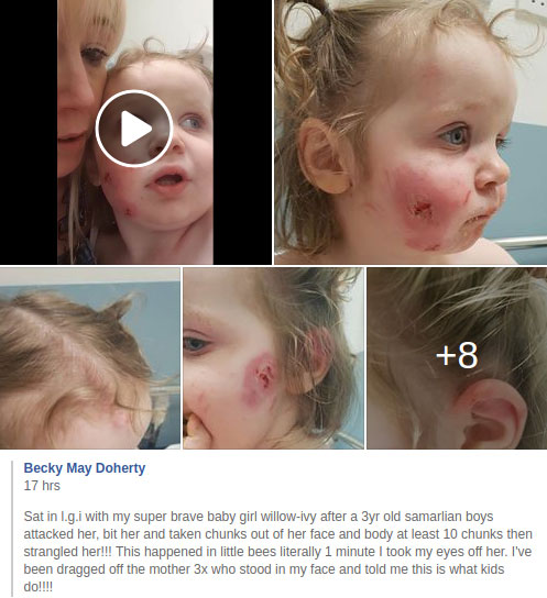 The mother was forced to pull a little boy off Willow’s neck when it emerged she had 15 bite marks all over her body.