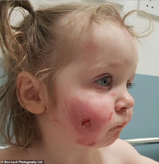 Becky told the newspaper: ‘She looks like she’s been savaged by a dog, not a child.’