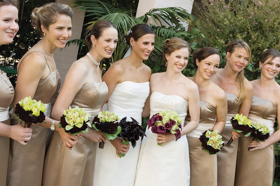 “The brides were radiant in formal white gowns; their parents wore black, and the bridesmaids wore taupe. The couple exchanged matching diamond eternity bands an dread vows they wrote themselves, then their parents joined the bridal party and surrounded them in a ‘circle of love.’” Ashley called it beautiful, spiritual and perfect.