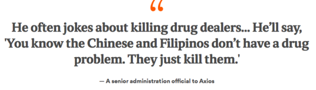 But the president doesn’t just joke about it. According to five sources who’ve spoken with Trump about the subject, he often leaps into a passionate speech about how drug dealers are as bad as serial killers and should all get the death penalty.