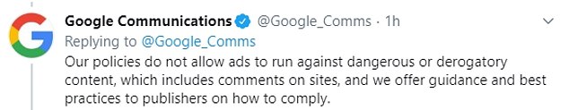 A Google spokeswoman was quoted by NBC as saying it had ‘removed both sites’ ability to monetize’.