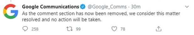 This is Google’s statement about The Federalist: