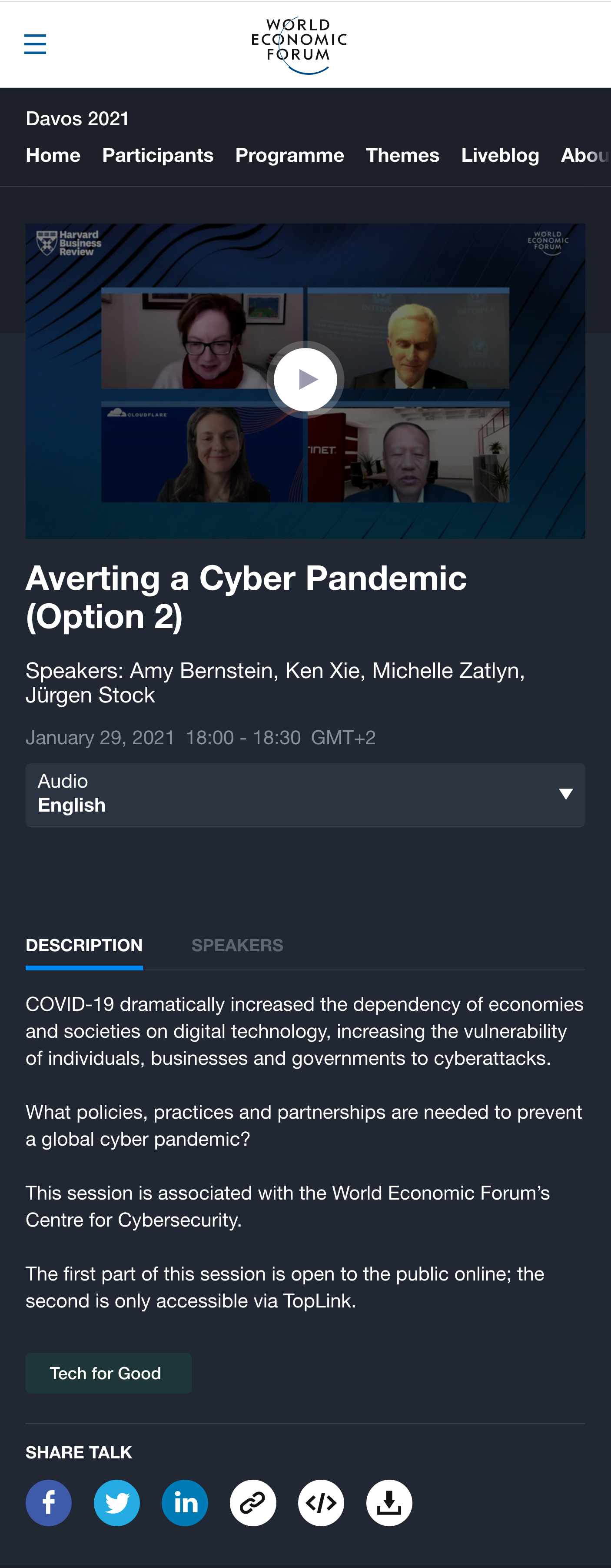 Then, ask me how many times the term “cyber pandemic” (in quotes) appears on the WEF website.