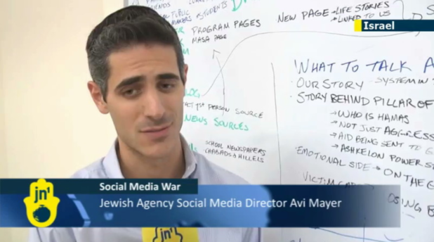 Here’s an interesting photo. On the right is Barak Raz, IDF spokesman “of the division commanding West Bank operations.” On the left we see Avi Mayer, who once described himself as “Spokesman of The Jewish Agency for Israel, the largest Jewish nonprofit organization in the world” and someone who “previously served in the IDF Spokesperson’s Unit.” But here he’s being modest. In reality, he was the Jewish Agency’s Social Media Director.