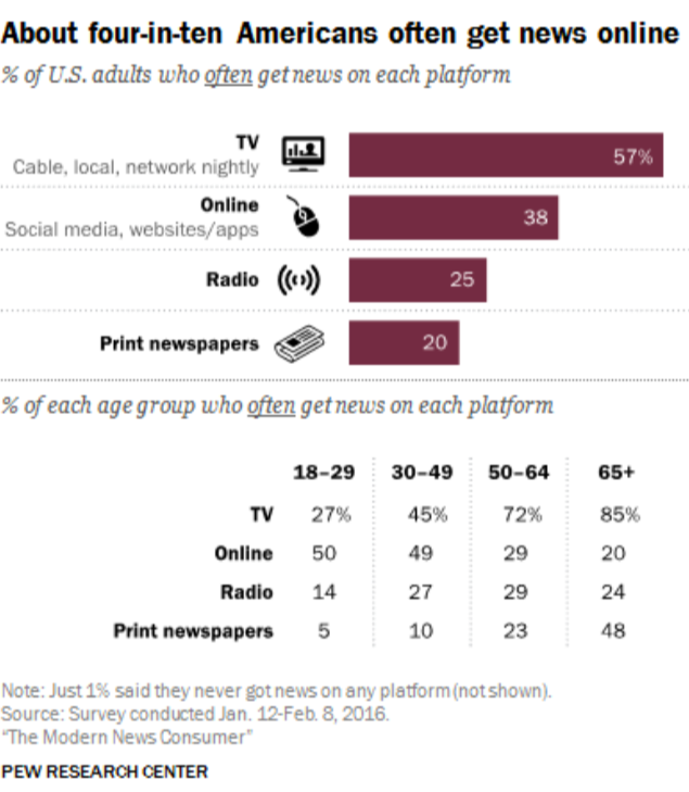 Only 27% of the 18-29 age segment get their news from the television, compared to 85% of 65+. That’s why CNN is so obviously aimed at kooky boomer cat ladies – they know those are the only people watching it.