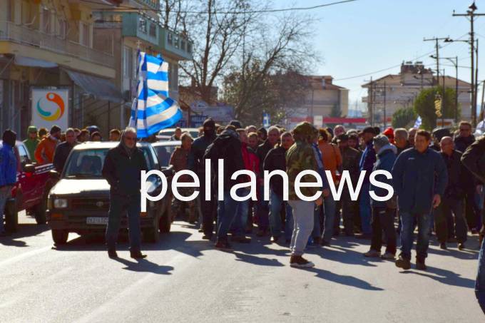 Shortly before 11:00 in the morning the farmers and stockbreeders from the Pella blockade met with their colleagues outside the Xenitideio center in Aridaia and on foot headed for the office of Syriza MP, Sifakis.