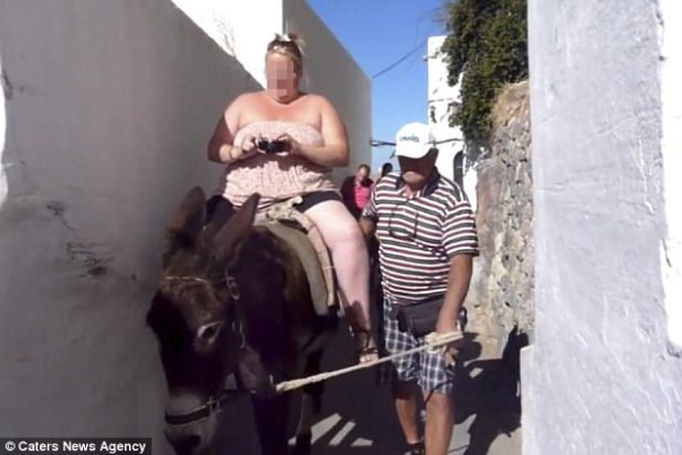 Donkeys on the picturesque Greek island of Santorini are being crippled by carrying heavy holidaymakers – as locals resort to cross-breeding the beasts with mules so they can carry heavier tourists.