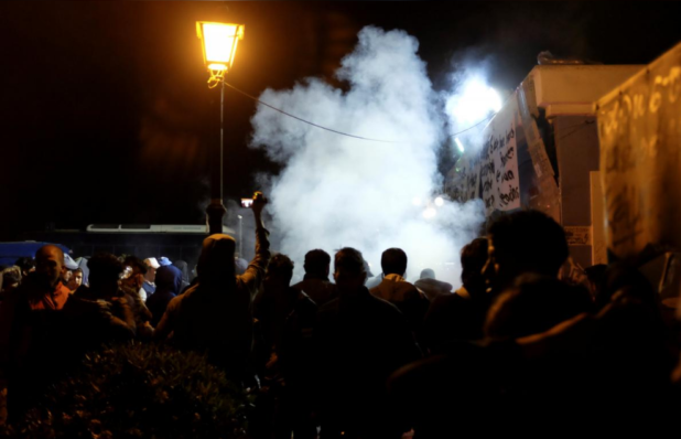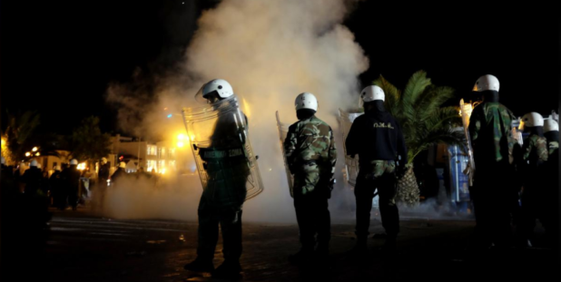 Locals were protesting against a group of about 200 refugees and migrants who had camped out for days on a main square on the island’s seaside promenade, a police official on the island said. The asylum-seekers were demonstrating against conditions in the island’s camp and delays in asylum applications.