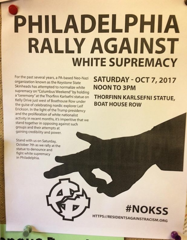 Since 2006, Pennsylvania-based WN 1.0 group Keystone United has held Leif Erikson Day celebrations at Fairmount Park in Philadelphia, as a celebration of European achievement and heritage.