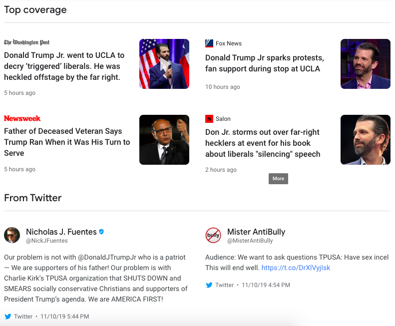 Fox News, hilariously, does cite The Guardian article, but just says “protesters,” leaving the reader to speculate that it must have been leftist protesters. And that was of course the whole thing that Trump and his wetback hooker were trying to do – they continually acted as though our lads were leftists throughout their 20-minute fail talk.