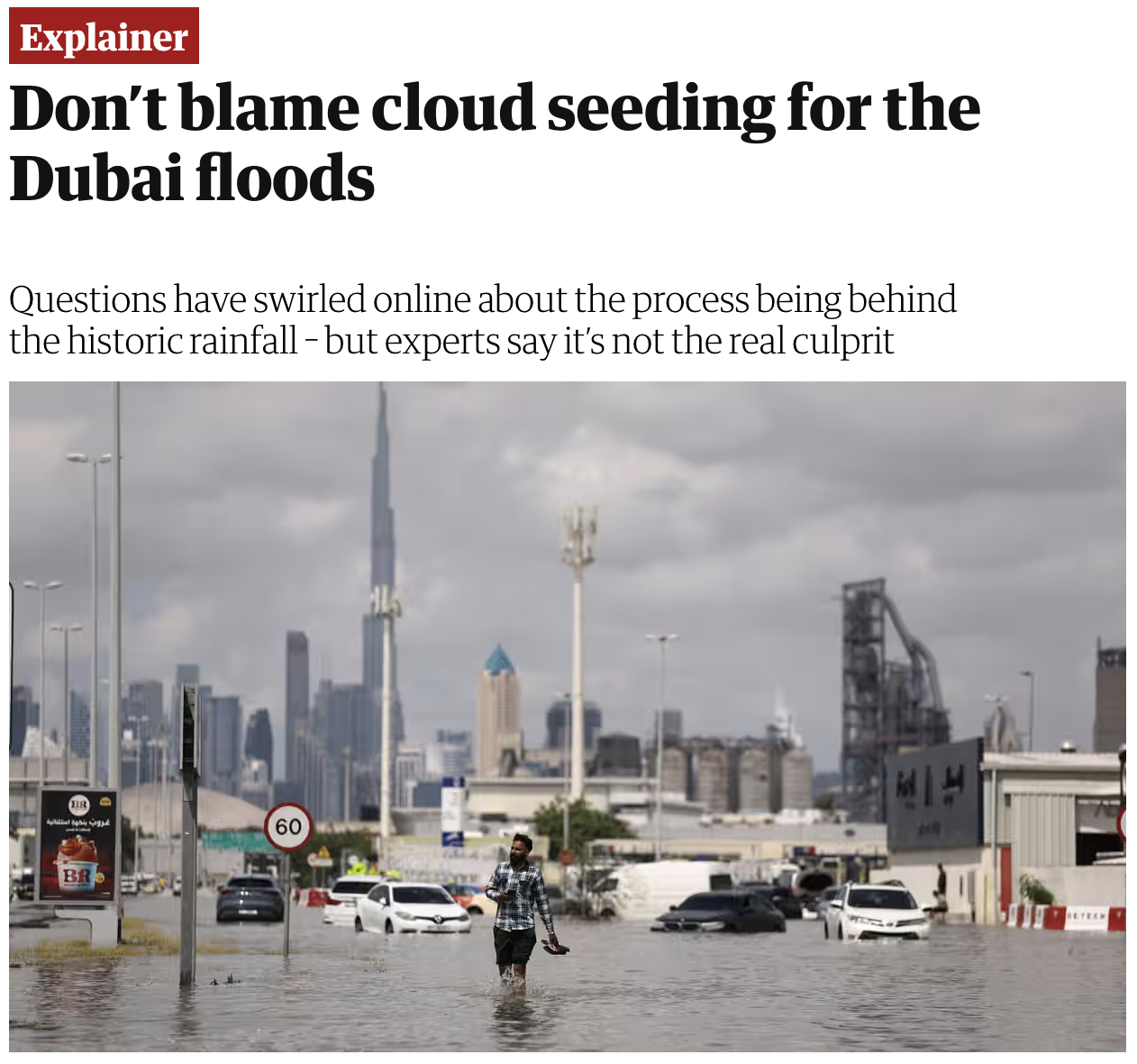 Dubai is being flooded right now, and The Guardian wants to make one thing clear: don’t believe that this is a result of chemtrails.