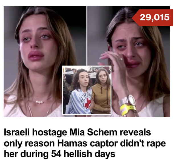 “His wife was outside the room with the children,” freed hostage Mia Schem said during a newly released interview on Israeli TV. “That was the only reason he didn’t rape me.”