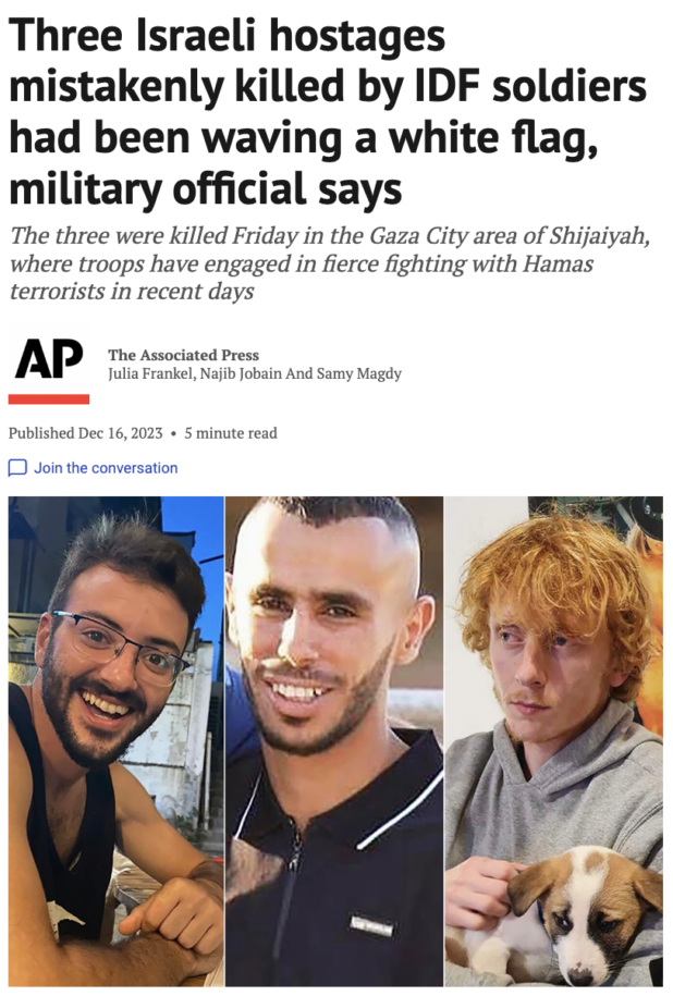 What’s more, Israel admits that they killed three hostages who were waving white flags.
