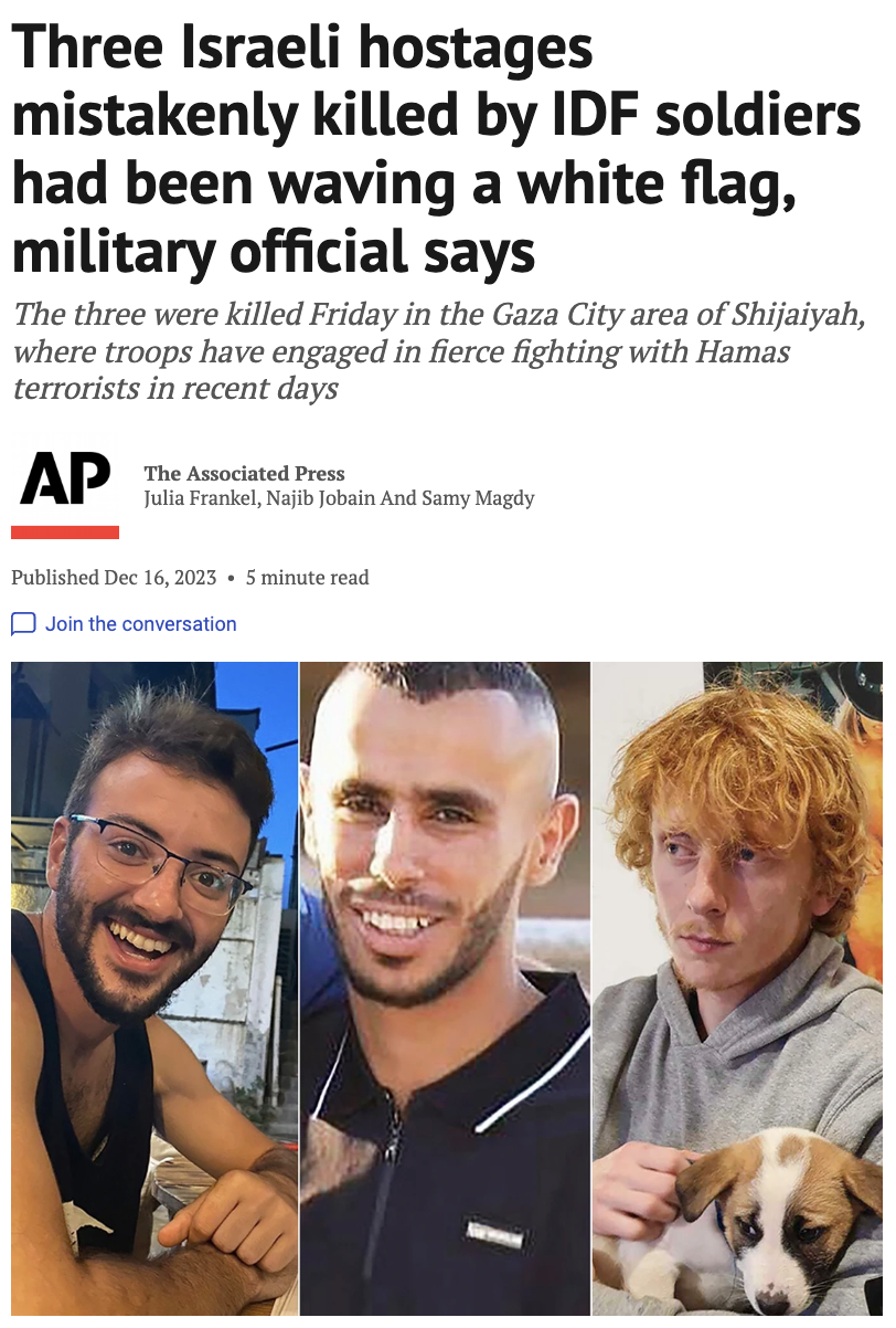 See: Whoops! Israel Kills Israeli Hostages Holding White Flag