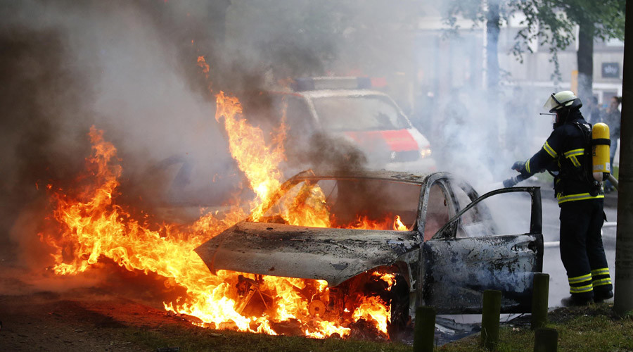 Hamburg is on fire. Antifa is mass rioting at #G20 and setting fire to vehicles all over the city. pic.twitter.com/nYHOloWbDZ