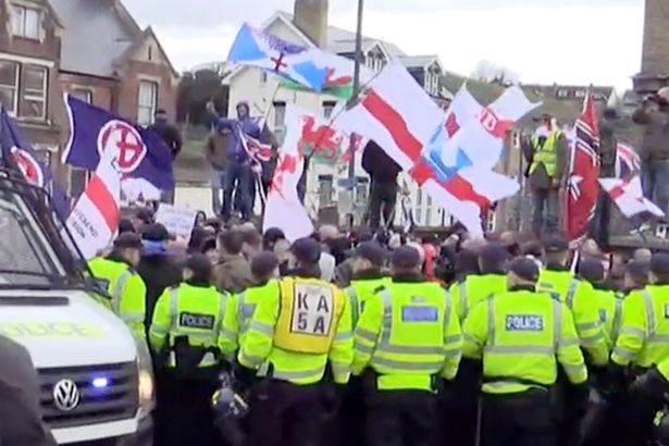 Police are struggling to hold back antifascists. The Nazis might just have to get in the sea. #Dover pic.twitter.com/6veopMxmJ3