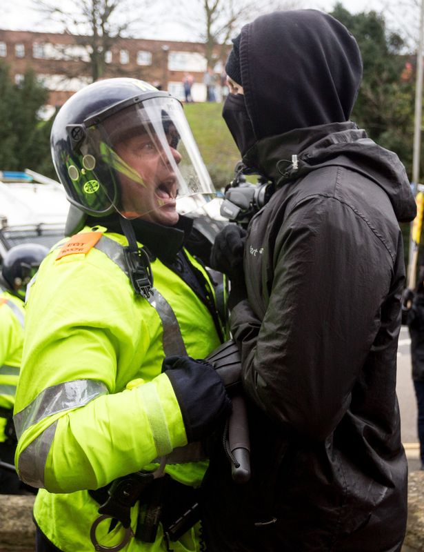 Bricks thrown as demonstrators clash in #Dover amid huge police presence https://t.co/aGiLravhBw pic.twitter.com/2n0HOeOyMg