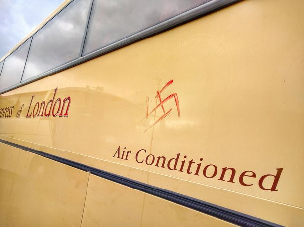 One fascist drew a swastika on our coach in his own blood #antifasismi #Dover pic.twitter.com/Tc9XBOQ76s