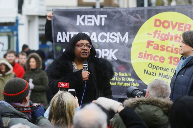 Diane Abbott addresses anti-racism demonstrators as rival groups clash in #Dover https://t.co/fTYUMNbI8c pic.twitter.com/B0cXcQKqsV