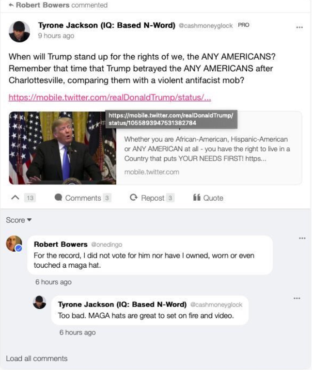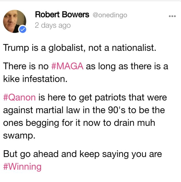 It was always 100% obvious to me that Gab was filled with feds, that probably most of the users promoting these insane ideas were the same Jews posting over and over again with different accounts – just a couple of real retards mixed in. Clearly, someone encouraged this guy in private messages to commit this act now.