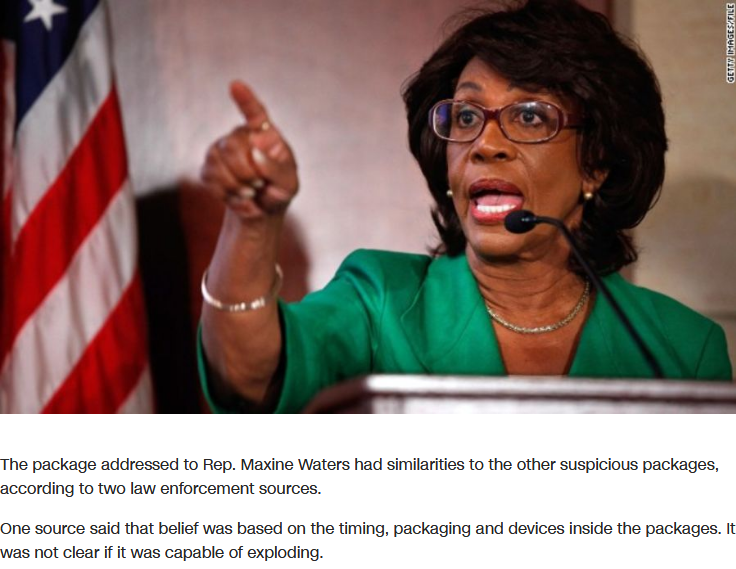 This is a pretty clever way to provoke every big name leftist to make public statements on what a victim they are, all at once – because their name was written on a fake bomb at a sorting facility.