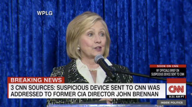 The Secret Service said Wednesday that it had intercepted packages containing “potential explosive devices” addressed to former secretary of state Hillary Clinton in New York and former president Barack Obama in Washington, while authorities also rushed to investigate a suspicious package sent to CNN’s headquarters.