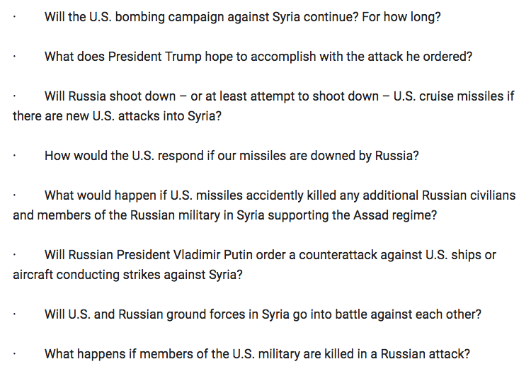 Break the country up into warring terrorist states because of an alleged chemical attack no one knows if actually even happened let alone who did it?